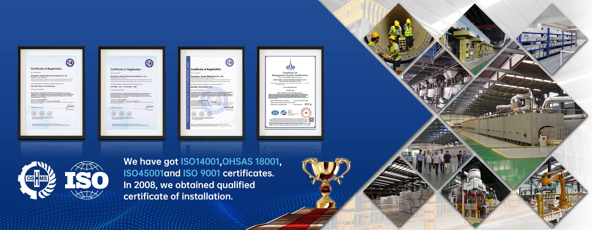 公司致力于耐火新材料、新技術(shù)、新產(chǎn)品的開(kāi)發(fā)和推廣應(yīng)用,是國(guó)家高新技術(shù)企業(yè),產(chǎn)品先后通過(guò)了ISO9001質(zhì)量管理體系、ISO14001環(huán)境管理體系、GB/T28001職業(yè)健康安全管理體系認(rèn)證,同時(shí)具有防水防腐保溫工程專業(yè)承包貳級(jí)資質(zhì)、冶金工程施工總承包叁級(jí)資質(zhì)、環(huán)保工程專業(yè)承包叁級(jí)資質(zhì)。